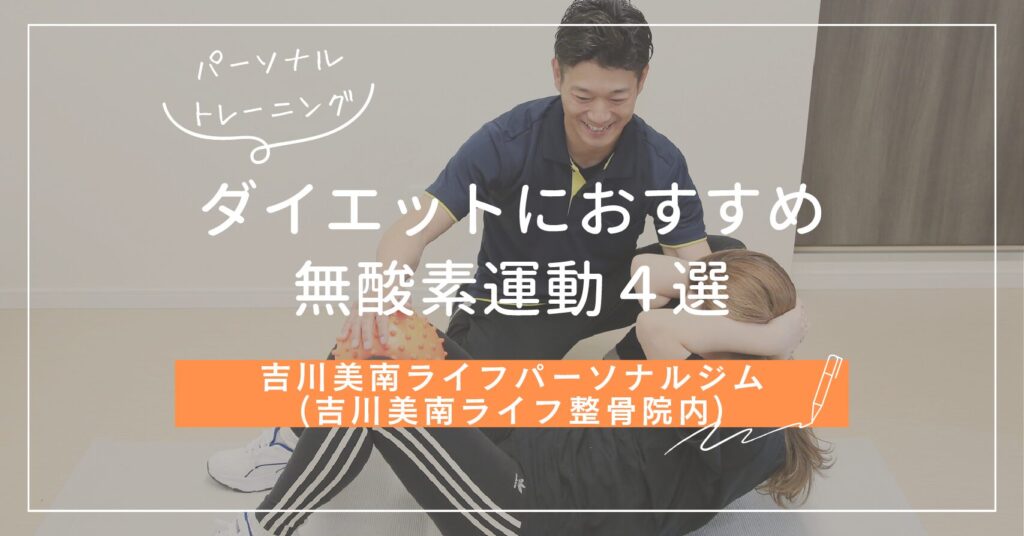 こんにちは。 吉川美南ライフ整骨院です。 今日はダイエットをしたい、すでにしている方にもおすすめな無酸素運動のご紹介。 無酸素運動とは まず初めに運動には有酸素運動と無酸素運動があることをご存知でしょうか? 有酸素運動とは ウォーキングやジョ...