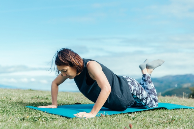 腕立て伏せを行う時に肩がすくんでしまう人が多いので体幹を真っすぐにすることを意識することが大切です。